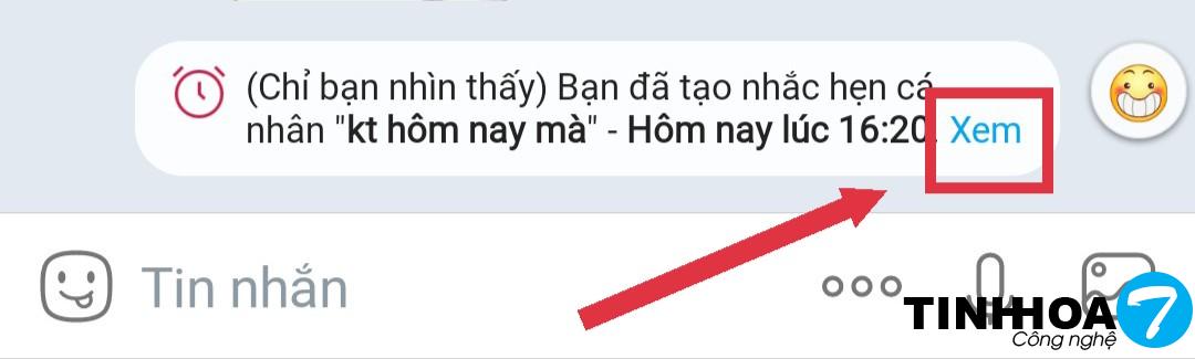 Sau khi đặt lời nhắc xong bạn sẽ xuất hiện một thông báo, bạn hãy chọn xem.