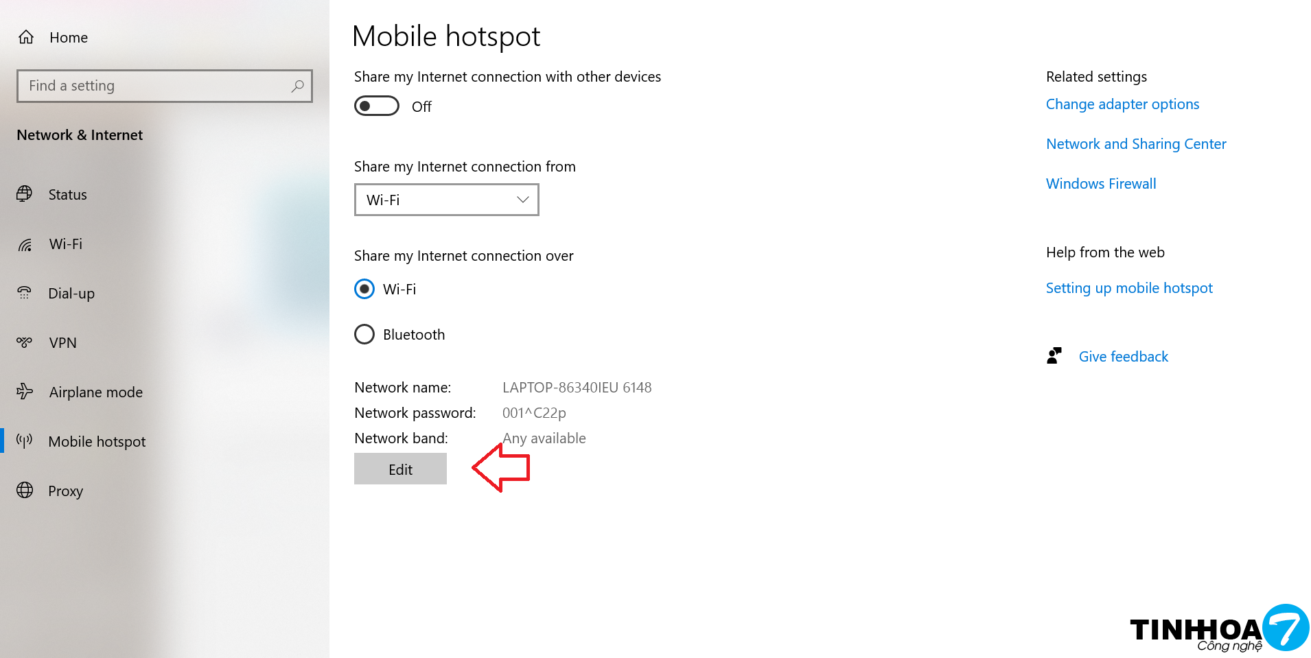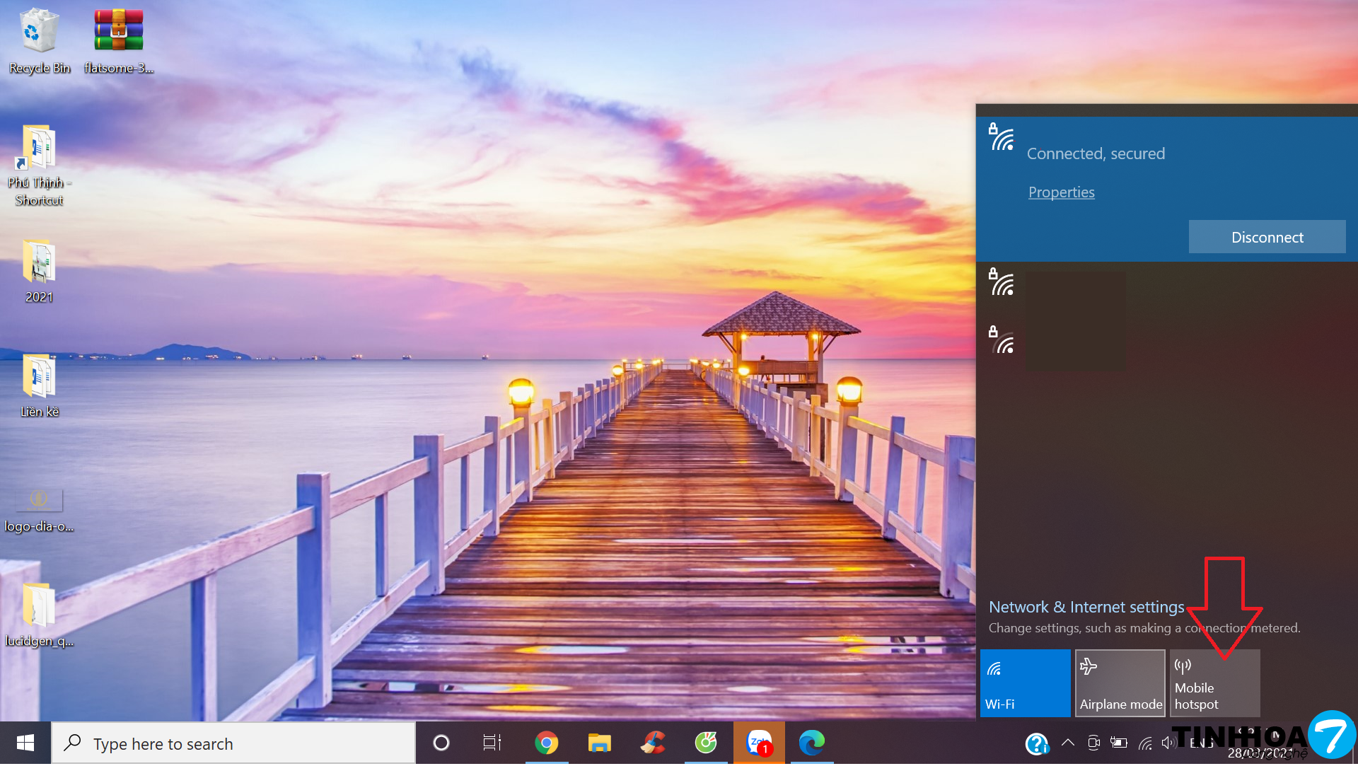 Click chuột trái vào biểu tượng wifi rồi chọn Mobile hotspot