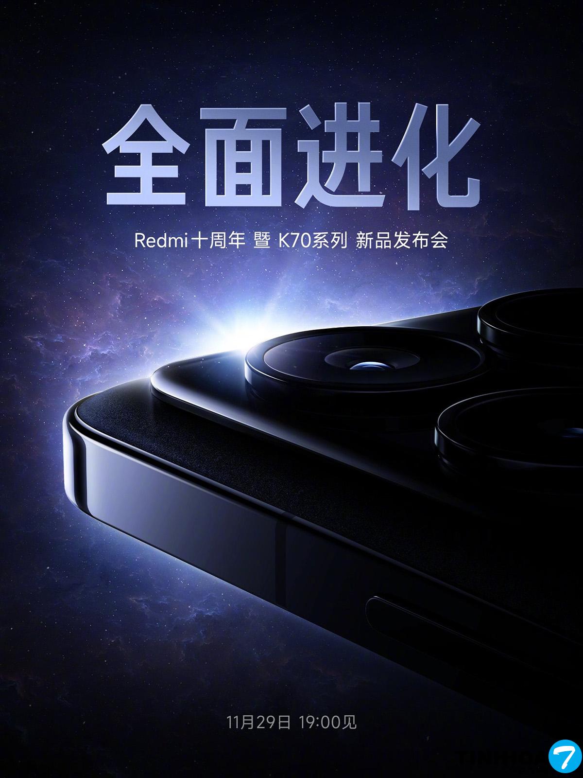 Xiaomi đã đăng tải một hình ảnh teaser xác nhận rằng sẽ ra mắt Redmi K70 series vào ngày 29/11 tại thị trường Trung Quốc.
